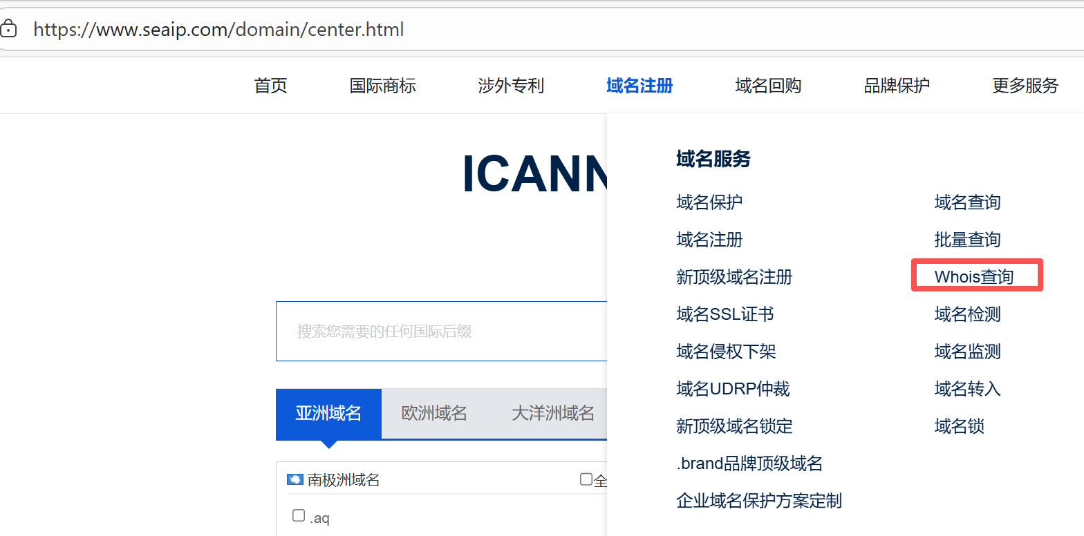 3. 支持全球1198种域名后缀的WHOIS查询,包过亚洲、欧洲、非洲、美洲、大洋洲等;