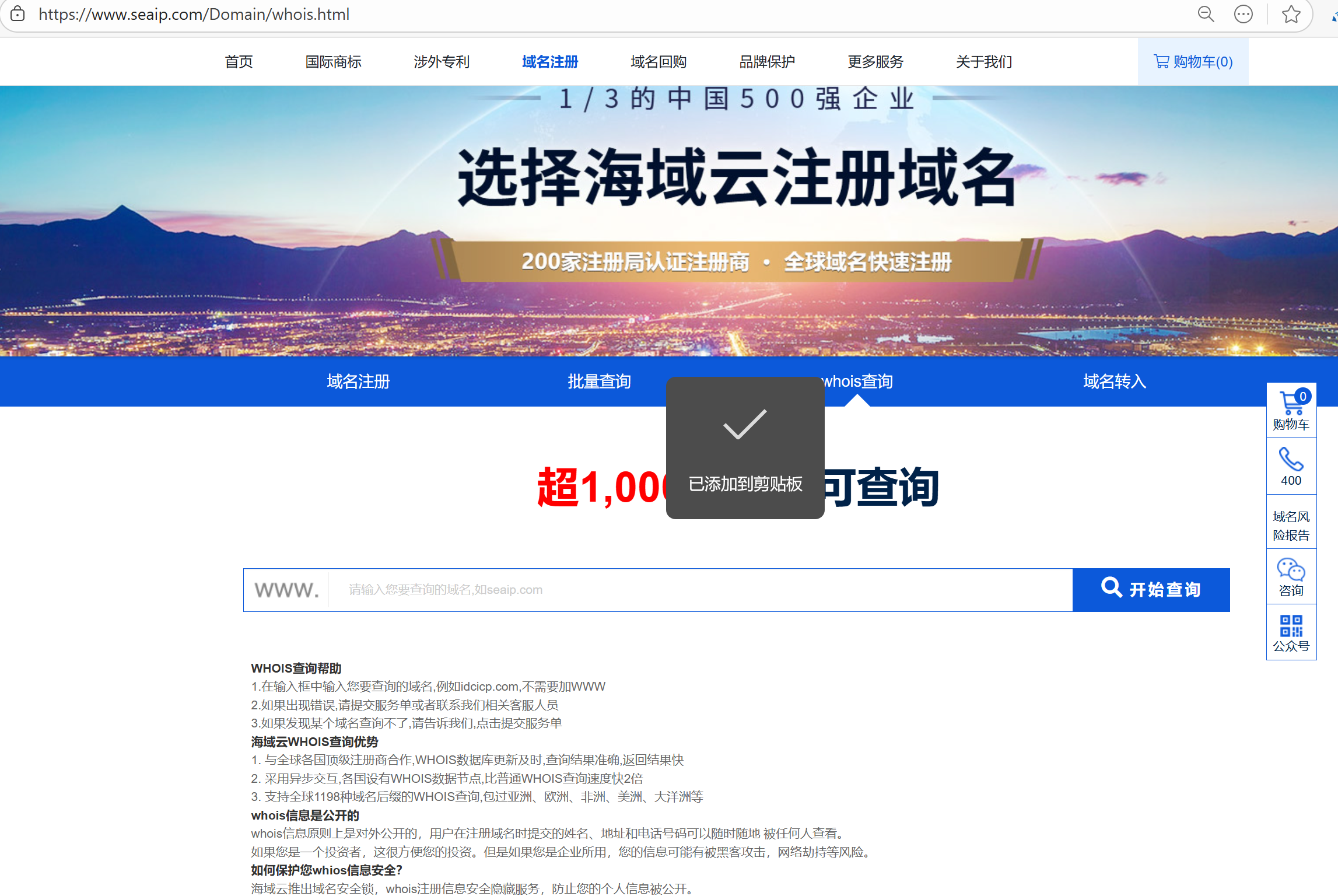 对于刚接触域名的客户来说,会经常看到whois这个词,下面海域云小编就对whois查询工具简单介绍一下。